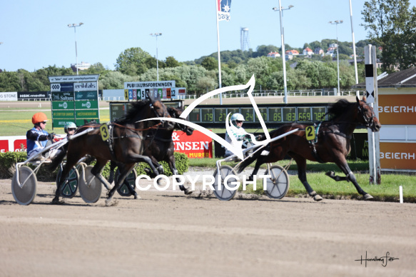 - Beskrivelse: KINGS DUST med Flemming Jensen vinder dagens 1 løb her på Spar Nord Arena-Aalborg Væddeløbsbane d. 11/6-2025. Fotograf: Hesselborg Foto