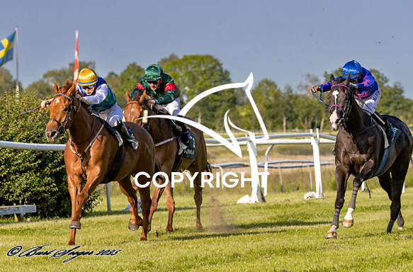 - Beskrivelse: TOM COLLINS med Evelina Rönnlund 3. løbs vinder på Klampenborg d. 2024-06-13. Photo: Burt Seeger.