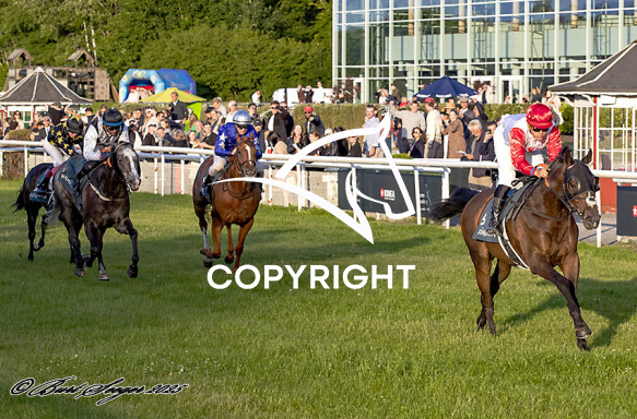 - Billede Beskrivelse: SHAHANSHA med Andreas Tapia Dalbark 7. løbs vinder på Klampenborg d. 2024-06-27. Photo: Burt Seeger.