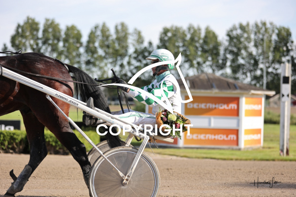 - Beskrivelse: KINGS DUST med Flemming Jensen vinder dagens 8 løb. Amerikanerløb. Spar Nord Arena-Aalborg Væddeløbsbane d. 11/7-2025. Fotograf: Hesselborg Foto