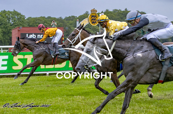 - Beskrivelse: JAGUAR BF med Elin Hedman 3. løbs vinder på Klampenborg d. 2024-07-11. Photo: Burt Seeger.