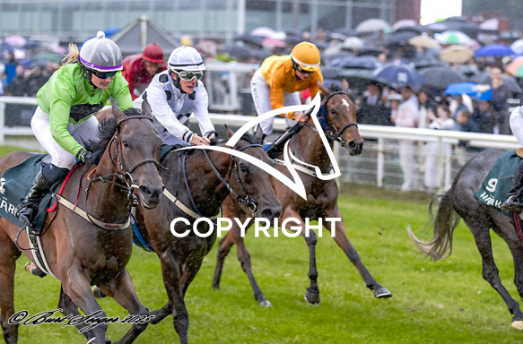 - Beskrivelse: ISAYNOMORE med Stina Östlund 4. løbs vinder på Klampenborg d. 2024-07-11. Photo: Burt Seeger.