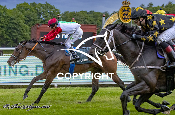 - Billede Beskrivelse: TRUE DANE med Mikkel Mortensen 5. løbs vinder på Klampenborg d. 2024-07-11. Photo: Burt Seeger.
