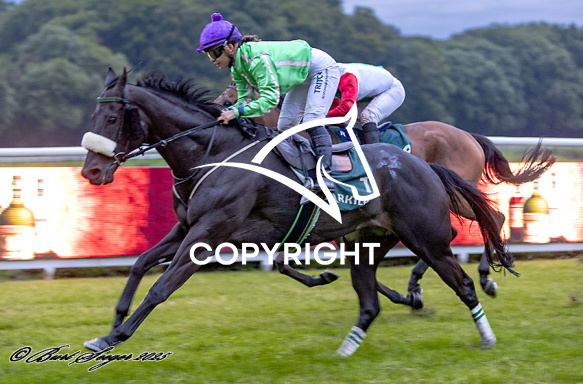 - Billede Beskrivelse: SIR MACKEN med Elin Hedeman 8. løbs vinder på Klampenborg d. 2024-07-11. Photo: Burt Seeger.