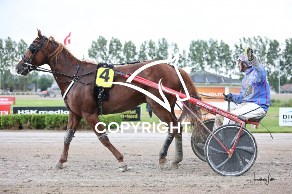 - Beskrivelse: IVANHOE med Johnny Olsen vinder dagens 1 travløb. Amatørløb Spar Nord Arena-Aalborg Væddeløbsbane d. 15/7-2025. Fotograf: Hesselborg Foto