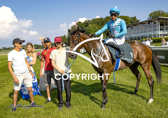 - Billede Beskrivelse: SWEET SUNSHINE med Carlos Lopez 1. løbs vinder på Klampenborg d. 2024-07-19. Photo: Burt Seeger.