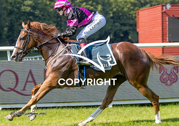 - Billede Beskrivelse: HIGHLAND BUDDY med Annie Nilsson-Lindahl i Prøveløb på Klampenborg d. 2024-07-19. Photo: Burt Seeger.