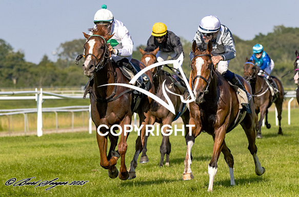 - Billede Beskrivelse: HI KITTY med Jacob Johansen 3. løbs vinder på Klampenborg d. 2024-07-19. Photo: Burt Seeger.
