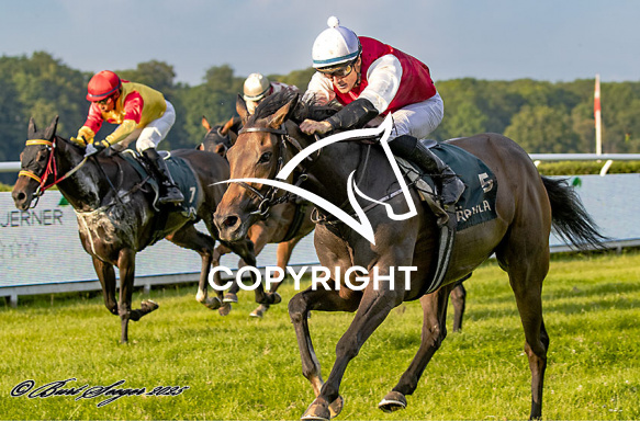 - Beskrivelse: MYSTIQUE med Oliver Wilson 7. løbs vinder på Klampenborg d. 2024-07-19. Photo: Burt Seeger.