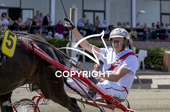 - Billede Beskrivelse: BACKER T R med Bengt Olsson 1. løbs vinder, på Charlottenlund d. 2025-07-20. Photo: Burt Seeger.