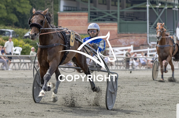 - Billede Beskrivelse: KONG SEBASTIAN med Bjarke Haagensen 7. løbs vinder, på Charlottenlund d. 2025-06-22. Photo: Burt Seeger.