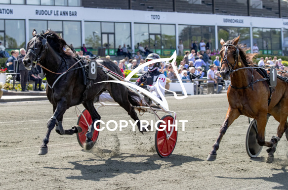 - Billede Beskrivelse: KILL BILL med Michael Lønborg 6. løbs vinder, på Charlottenlund d. 2025-06.01. Photo: Burt Seeger.