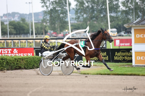- Beskrivelse: KUARATO HEOT med Birger Jørgensen vinder dagens 4 løb. Spar Nord Arena-Aalborg Væddeløbsbane d. 21/7-2025. Fotograf: Hesselborg Foto