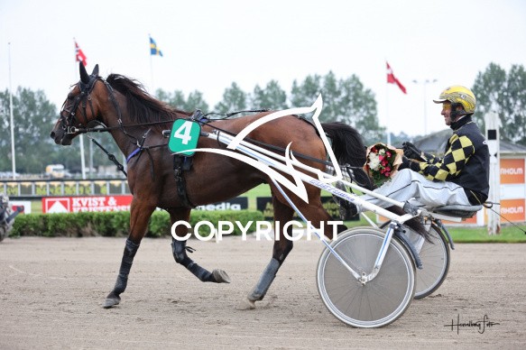 - Beskrivelse: KUARATO HEOT med Birger Jørgensen vinder dagens 4 løb. Spar Nord Arena-Aalborg Væddeløbsbane d. 21/7-2025. Fotograf: Hesselborg Foto