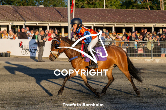 - Billede Beskrivelse: Kamas Notra Dame med Tilde Mundus Nielsen Bornholms Brand Park 22 juli 2025 Fotograf Torben Ager - Travfoto Bornholm