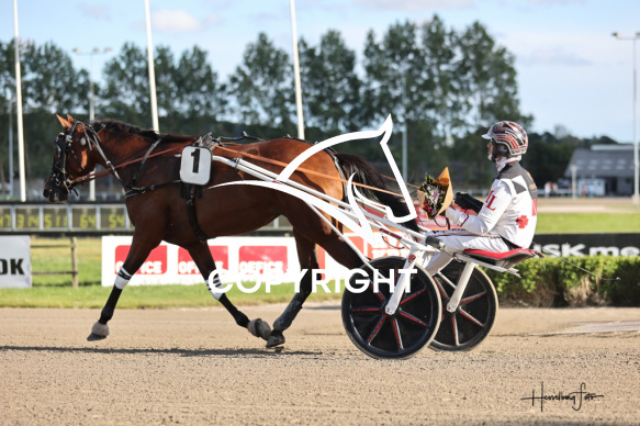 - Beskrivelse: KLEOPATRA S F med Michael Lønborg vinder dagens 5 løb. Amerikanerløb Spar Nord Arena-Aalborg Væddeløbsbane d. 30/7-2025. Fotograf: Hesselborg Foto