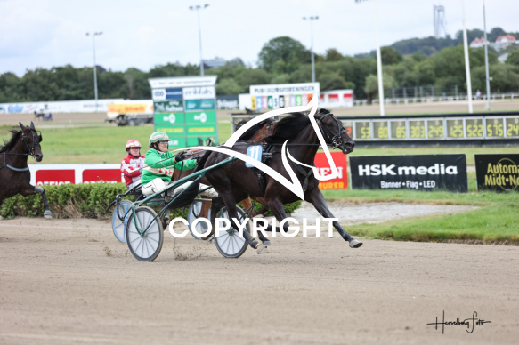 - Beskrivelse: KOLLUND MØBLER med Sarah Bøckman vinder dagens 2 løb. Klasse II - 3- og 4 års løb - Aalborg Hesteejerforening 70 års Jubilæumsløb Spar Nord Arena-Aalborg Væddeløbsbane d. 2/8-2025. Fotograf: Hesselborg Foto