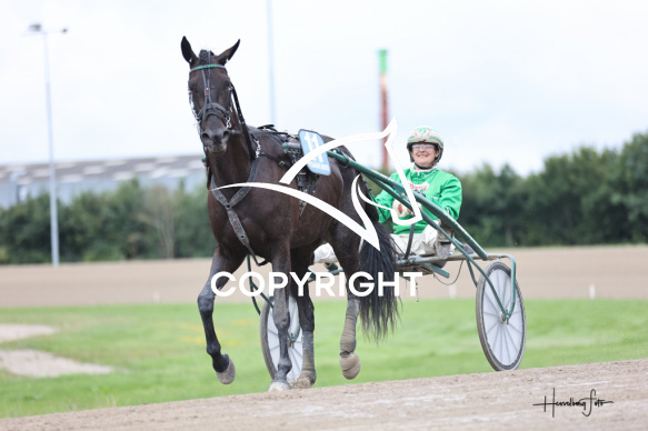 - Beskrivelse: KOLLUND MØBLER med Sarah Bøckman vinder dagens 2 løb. Klasse II - 3- og 4 års løb - Aalborg Hesteejerforening 70 års Jubilæumsløb Spar Nord Arena-Aalborg Væddeløbsbane d. 2/8-2025. Fotograf: Hesselborg Foto