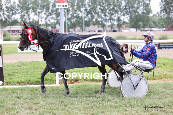 - Beskrivelse: GO TO GOAL SKOV med Johnni Olsen vinder dagens 8 løb. Formløb Amatør/Jockey - Aalborg Hesteejerforening 70 års Jubilæumsløb Spar Nord Arena-Aalborg Væddeløbsbane d. 2/8-2025. Fotograf: Hesselborg Foto