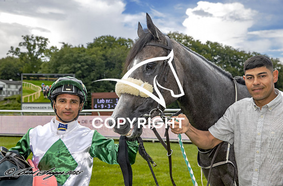 - Billede Beskrivelse: ALBARELLA med Elione Chaves 1. løbs vinder på Klampenborg d. 2024-08-02. Photo: Burt Seeger.