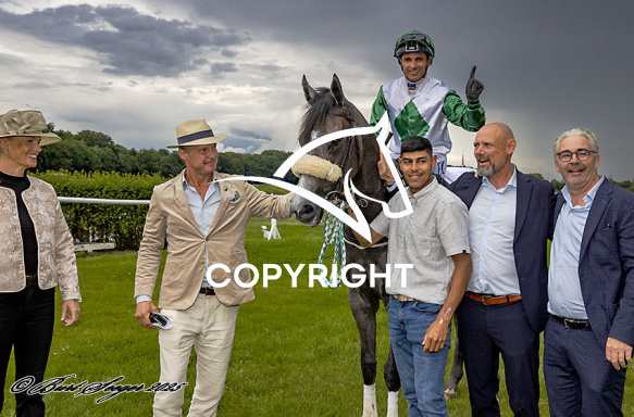 - Billede Beskrivelse: ALBARELLA med Elione Chaves 1. løbs vinder på Klampenborg d. 2024-08-02. Photo: Burt Seeger.