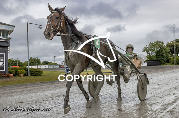 - Billede Beskrivelse: NIKITA'S BUCK med Jeppe Juel 4. løbs vinder, på Charlottenlund d. 2025-08-03. Photo: Burt Seeger.