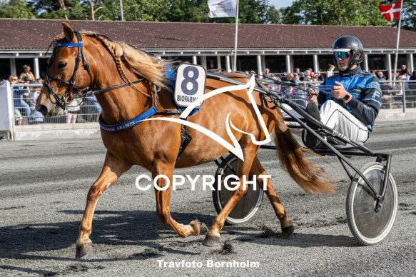 - Beskrivelse: Mørdrupsgårds Arabesk med Benjamin Kure Jensen Bornholms Brand Park 5 august 2025 Fotograf Torben Ager - Travfoto Bornholm