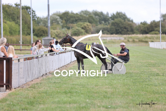- Beskrivelse: JUST TIME med Jan Dahlgaard vinder dagens 1 løb. DM for Professionelle Travtrænere 2025 (7. afd.) - Amerikanerløb Spar Nord Arena-Aalborg Væddeløbsbane d. 9/8-2025. Fotograf: Hesselborg Foto