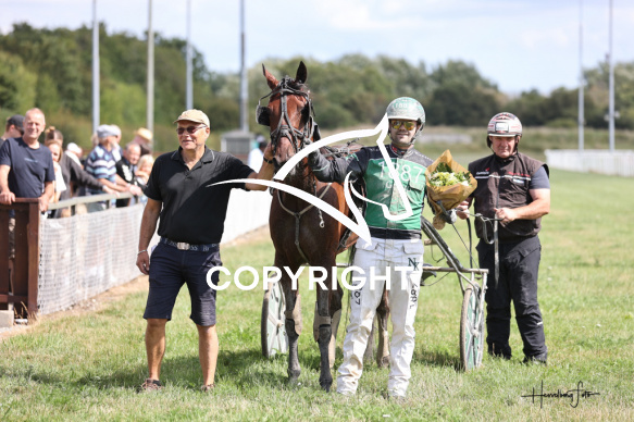 - Beskrivelse: HANSI ELHOLM med Nicklas Korfitsen vinder dagens 3 løb. DM for Professionelle Travtrænere 2025 (9. afd.) - Amerikanerløb Spar Nord Arena-Aalborg Væddeløbsbane d. 9/8-2025. Fotograf: Hesselborg Foto
