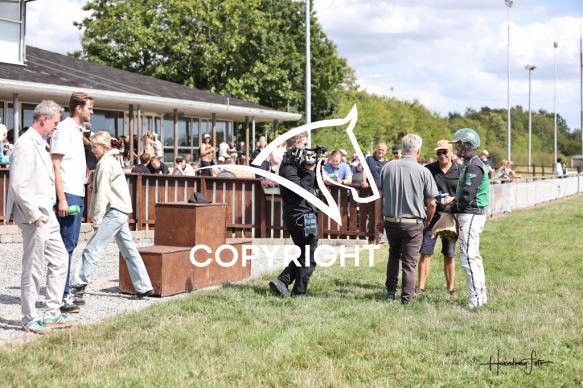 - Beskrivelse: HANSI ELHOLM med Nicklas Korfitsen vinder dagens 3 løb. DM for Professionelle Travtrænere 2025 (9. afd.) - Amerikanerløb Spar Nord Arena-Aalborg Væddeløbsbane d. 9/8-2025. Fotograf: Hesselborg Foto