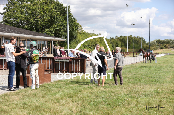 - Beskrivelse: HANSI ELHOLM med Nicklas Korfitsen vinder dagens 3 løb. DM for Professionelle Travtrænere 2025 (9. afd.) - Amerikanerløb Spar Nord Arena-Aalborg Væddeløbsbane d. 9/8-2025. Fotograf: Hesselborg Foto
