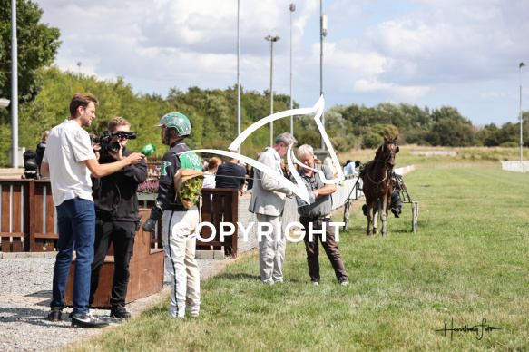 - Beskrivelse: HANSI ELHOLM med Nicklas Korfitsen vinder dagens 3 løb. DM for Professionelle Travtrænere 2025 (9. afd.) - Amerikanerløb Spar Nord Arena-Aalborg Væddeløbsbane d. 9/8-2025. Fotograf: Hesselborg Foto