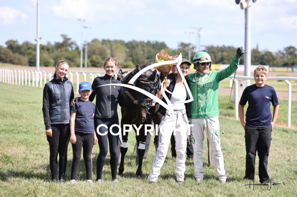 - Beskrivelse: GIN FLAME med Rene Kjær vinder dagens 6 løb. DM for Professionelle Travtrænere 2025 (12. afd.) - Amerikanerløb. Spar Nord Arena-Aalborg Væddeløbsbane d. 9/8-2025. Fotograf: Hesselborg Foto