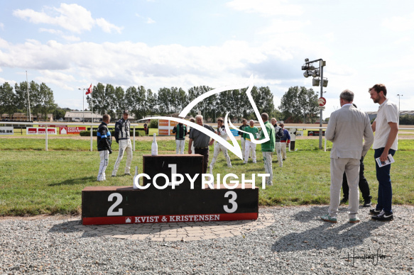 - Beskrivelse: DM for Professionelle Travtrænere - Præmieoverrækkelse blev vundet af Michael Lønborg. Spar Nord Arena-Aalborg Væddeløbsbane d. 9/8-2025. Fotograf: Hesselborg Foto
