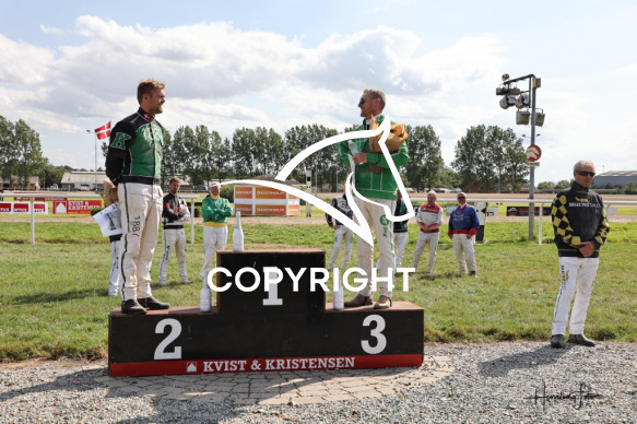 - Beskrivelse: DM for Professionelle Travtrænere - Præmieoverrækkelse blev vundet af Michael Lønborg. Spar Nord Arena-Aalborg Væddeløbsbane d. 9/8-2025. Fotograf: Hesselborg Foto