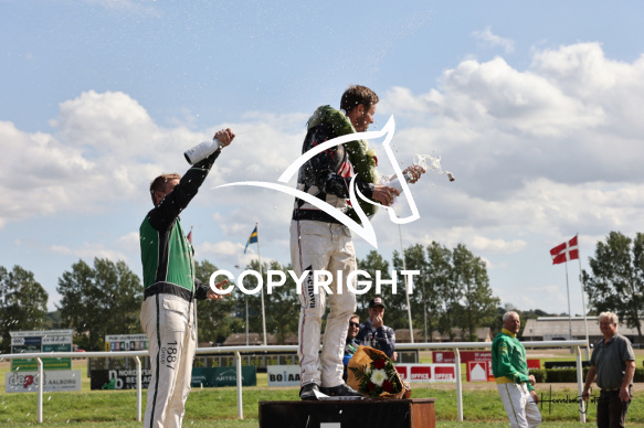 - Beskrivelse: DM for Professionelle Travtrænere - Præmieoverrækkelse blev vundet af Michael Lønborg. Spar Nord Arena-Aalborg Væddeløbsbane d. 9/8-2025. Fotograf: Hesselborg Foto