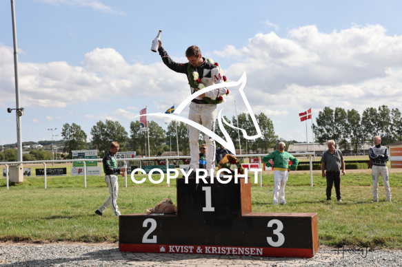 - Beskrivelse: DM for Professionelle Travtrænere - Præmieoverrækkelse blev vundet af Michael Lønborg. Spar Nord Arena-Aalborg Væddeløbsbane d. 9/8-2025. Fotograf: Hesselborg Foto