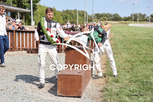 - Beskrivelse: DM for Professionelle Travtrænere - Præmieoverrækkelse blev vundet af Michael Lønborg. Spar Nord Arena-Aalborg Væddeløbsbane d. 9/8-2025. Fotograf: Hesselborg Foto