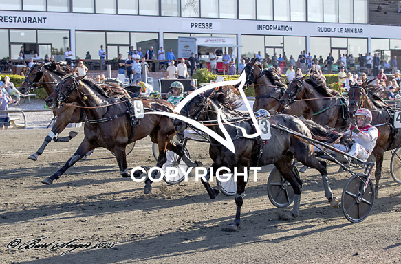 - Billede Beskrivelse: KALLES KRISBE NOTZ med Jörgen Sjunnesson 5. løbs vinder af DerbyPrøve 2025, på Charlottenlund d. 2025-08-13. Photo: Burt Seeger.