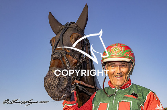 - Billede Beskrivelse: KATMAI med Steen Juul 9. løbs vinder, på Charlottenlund d. 2025-08-13. Photo: Burt Seeger.