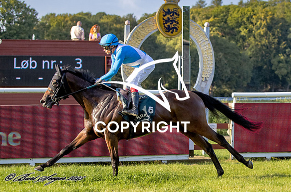 - Billede Beskrivelse: LAW'S DELAY med Carlos Lopez 3. løbs vinder på Klampenborg d. 2024-08-15. Photo: Burt Seeger.