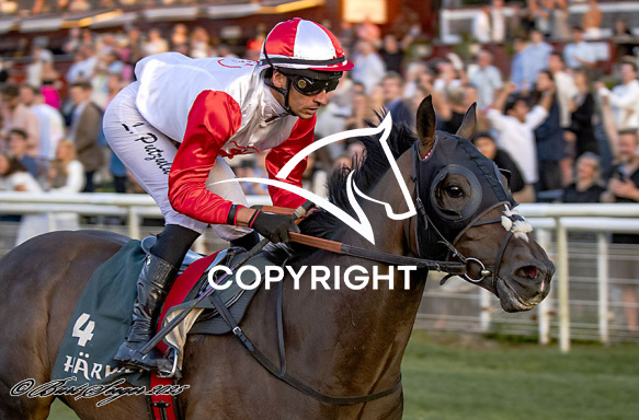 - Billede Beskrivelse: SHAHANSHA med Lorenzo Putzulu 6. løbs vinder på Klampenborg d. 2024-08-15. Photo: Burt Seeger.