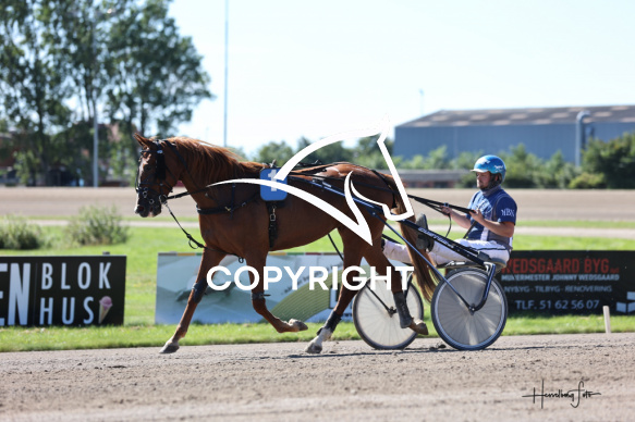 - Beskrivelse: RED MADONNA med Birger Jørgensen vinder dagens 2 løb. 3 års Løb Spar Nord Arena-Aalborg Væddeløbsbane d. 17/8-2025. Fotograf: Hesselborg Foto