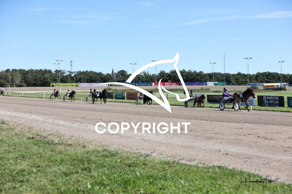 - Beskrivelse: Mørdrupgårds Carlo med Una Simonsen vinder dagens ponytrav. Spar Nord Arena-Aalborg Væddeløbsbane d.17/8-2025. Fotograf: Hesselborg Foto