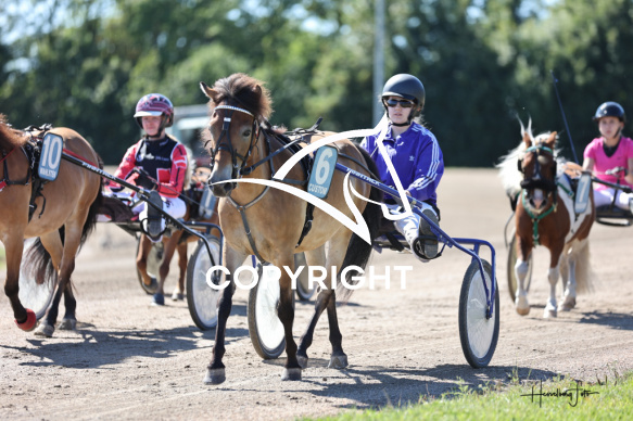 - Beskrivelse: Mørdrupgårds Carlo med Una Simonsen vinder dagens ponytrav. Spar Nord Arena-Aalborg Væddeløbsbane d.17/8-2025. Fotograf: Hesselborg Foto
