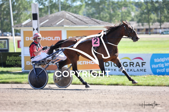 - Beskrivelse: LIVI PIZA H M med Emma Møller vinder dagens 8 løb. Formløb Amatør/Jockey Spar Nord Arena-Aalborg Væddeløbsbane d.17/8-2025. Fotograf: Hesselborg Foto