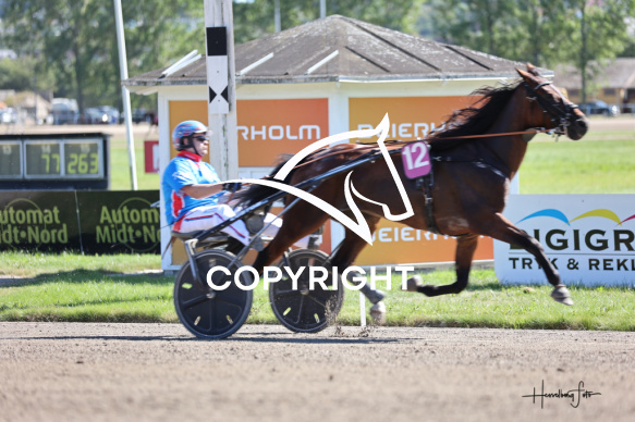 - Beskrivelse: LIVI PIZA H M med Emma Møller vinder dagens 8 løb. Formløb Amatør/Jockey Spar Nord Arena-Aalborg Væddeløbsbane d.17/8-2025. Fotograf: Hesselborg Foto