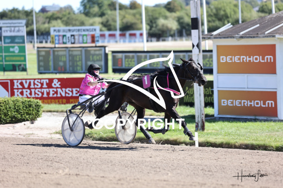 - Beskrivelse: LIVI PIZA H M med Emma Møller vinder dagens 8 løb. Formløb Amatør/Jockey Spar Nord Arena-Aalborg Væddeløbsbane d.17/8-2025. Fotograf: Hesselborg Foto