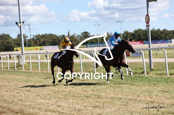 - Beskrivelse: Dane Force med Valmir De Azeredo vinder dagens 2 galopløb. DANSK GALOPS ÆRESPRÆMIE Spar Nord Arena-Aalborg Væddeløbsbane d. 23/8-2025. Fotograf: Hesselborg Foto