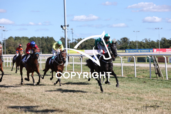 - Beskrivelse: Fallen Angel med Lorenzo Putzulu vinder dagens 4 galopløb. ELKÆR STUTTERI FULDBLODSFONDS ÆRESPRÆMIE Spar Nord Arena-Aalborg Væddeløbsbane d. 23/8-2025. Fotograf: Hesselborg Foto